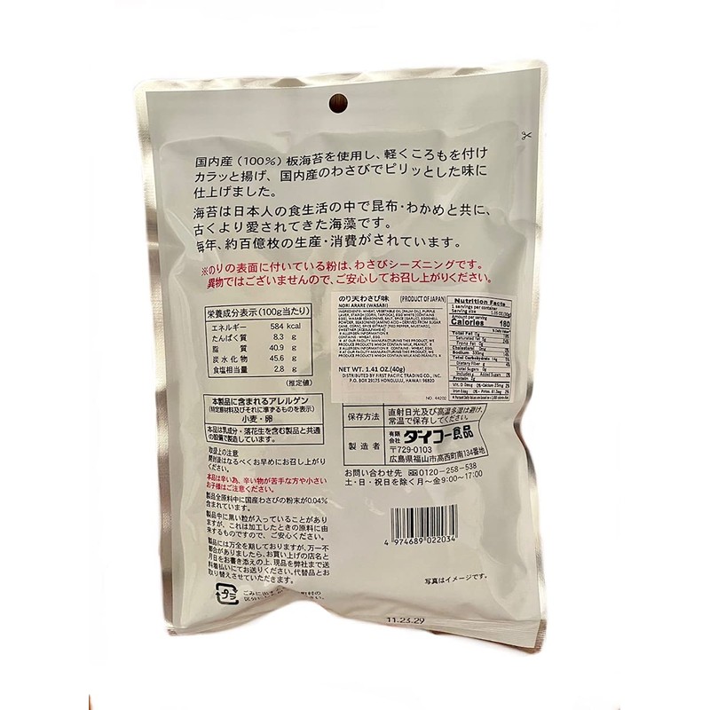 - Nori Arare Wasabi Tempura Seaweed Snacks - 1.41 ounce (40g), pack of 1
