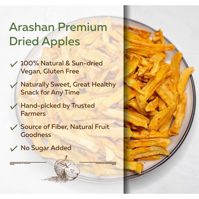 Arashan Premium Dried Apples – 100% Natural, No Sugar Added, Vegan & Gluten-Free Healthy Snack – 50g Pack of 10