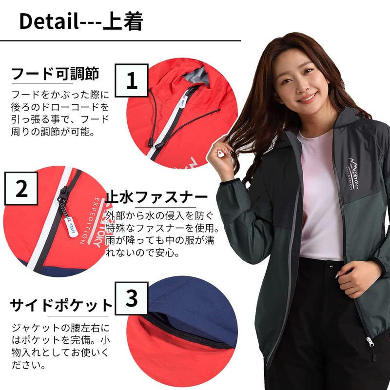 - Incredible Water Repellent and Moisture Permeability: This rainwear is lightweight and water repellent for women that can handle bad weather when going out or traveling. The fabric is made of polyester and TPU coated material that is windproof, so it can be used on trips where sudden cold is expected. Water pressure resistance 10,000 mm, permeability of 5,000 g/m2/24 h, so you can rest assured even in sudden rain. It can also be used as rainwear due to its water repellent feature, making it a convenient item that can be worn in any weather or situation