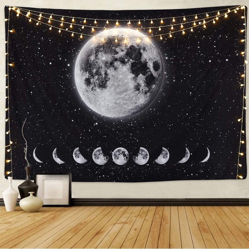 Arawat Tapestry Moon Phases Wall Tapestry Moon Black White Tapestry Moon Wall Decoration Psychedelic Rug Gothic Trippy Tapestry Wall Tapestry Wall Hanging Boho Wall Decoration (150 x 130cm)