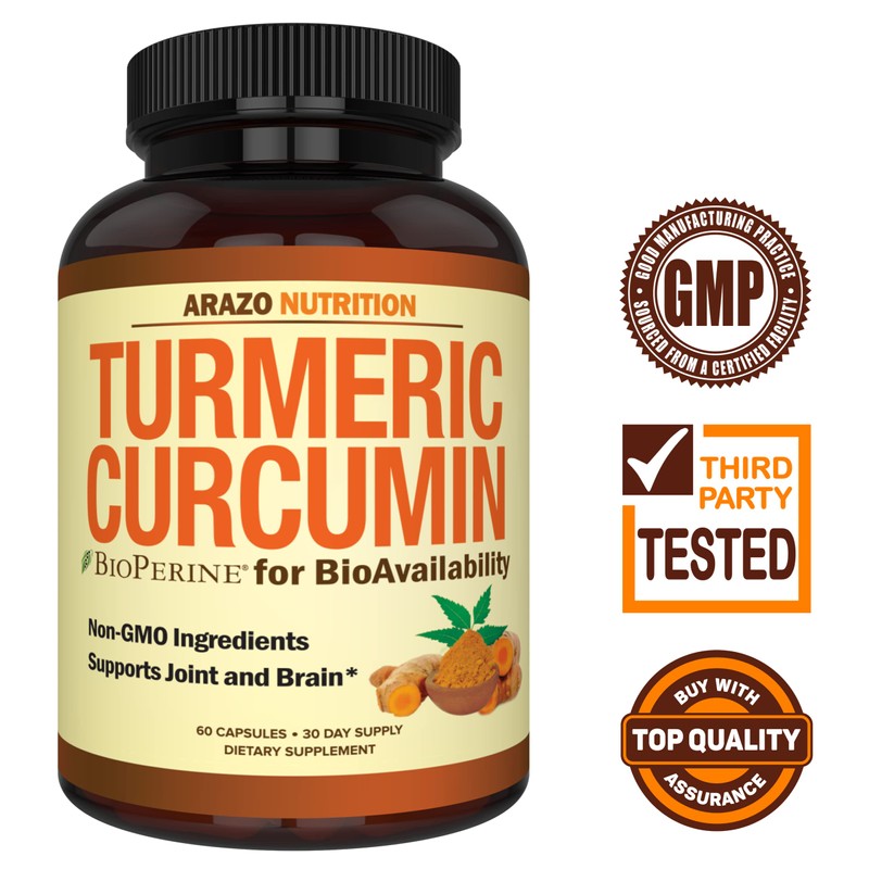 Arazo Nutrition Arazo Nutrition Turmeric Curcumin with BioPerine 1300mg with Black Pepper - Joint Support Nutritional Supplements - 100% Herbal Tumeric Root Capsules