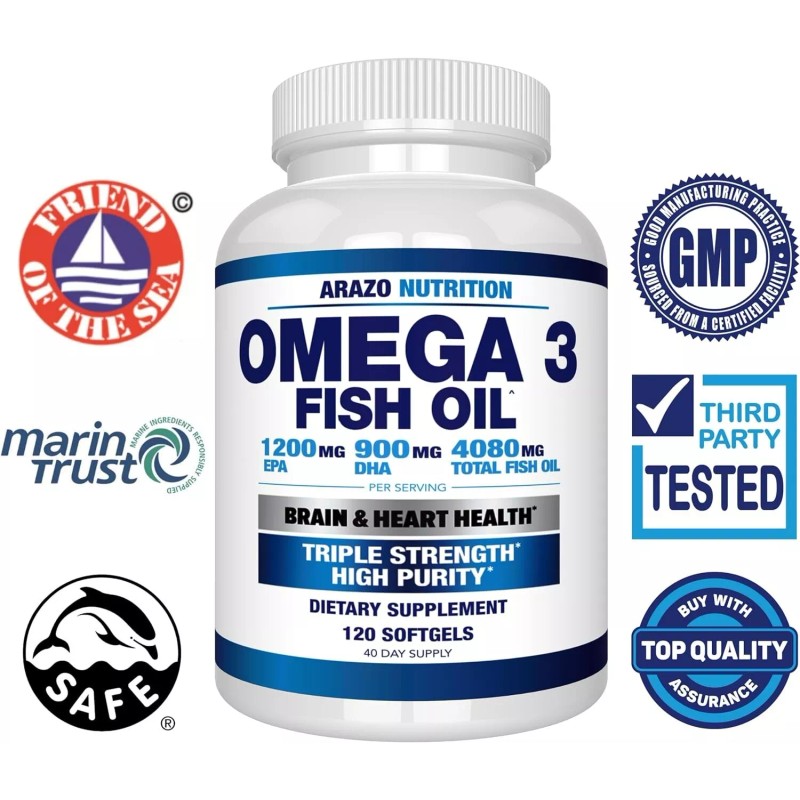 Arazo Nutrition Wild Caught Omega 3 Fish Oil 4,080mg– 120 Soft Gels