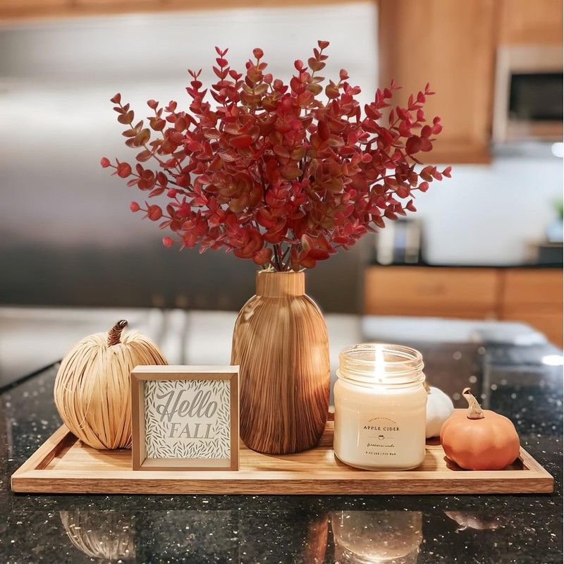 Arborus 5 Stems Artificial Fall Greenery – 14.6" Eucalyptus Leaf Stems for Autumn Floral Arrangements, Thanksgiving Centerpieces, Fall Decor Bouquets, Burgundy Red