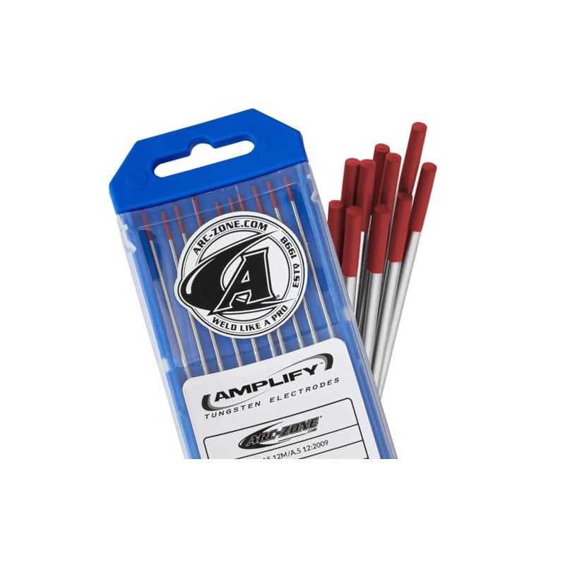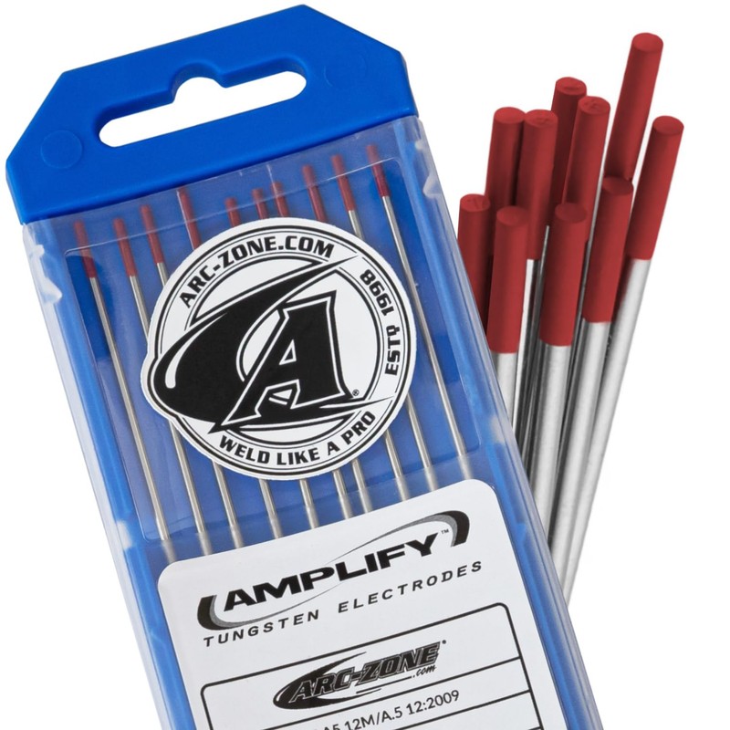 Arc-Zone Amplify Tungsten Electrode for TIG Welding, 2% Thoriated 3/32" x 7" (Red, EWTh-2) 10 Pack
