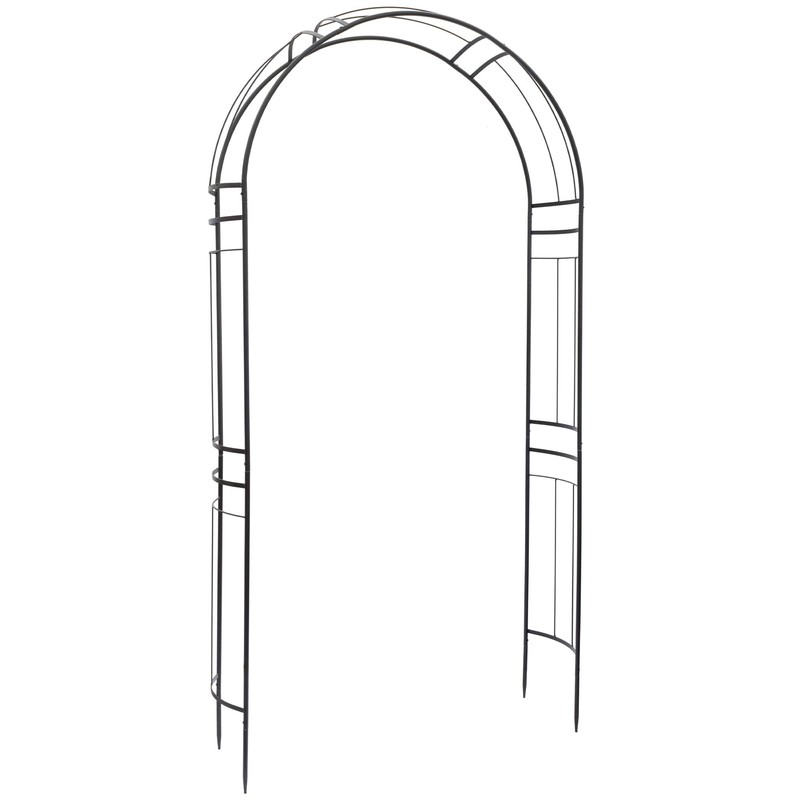 The Aspen Arbor by Arcadia Garden Products is an elegant focal point for any garden or yard, featuring contemporary lines in a weather-resistant black finish. Over eight feet in height, this quality arbor is durably crafted from powder coated metal. Provides a charming aesthetic with the addition of climbing plants or hanging ornaments. Perfect for weddings and occasions.