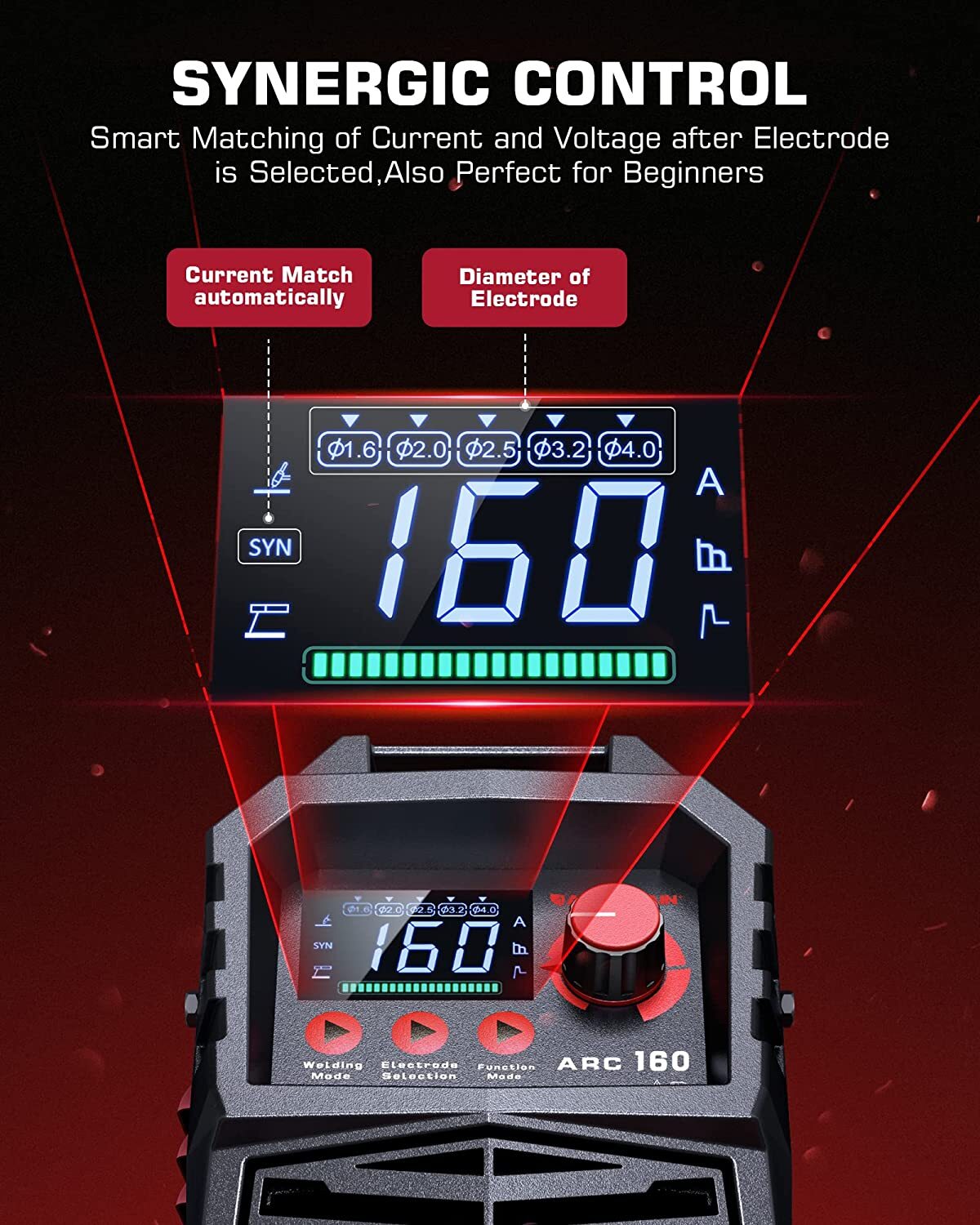 ARCCAPTAIN Stick Welder, 160A ARC/lift TIG Welding Machine with Synergic, IGBT Inverter 110V/220V Digital LED Display Portable MMA Welder Machine with Hot Start, Arc force and Anti-Stick