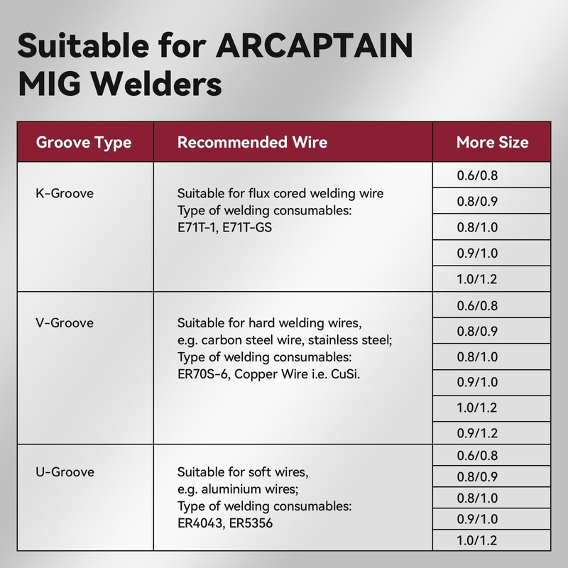 ARCCPATAIN Wire Feeding Wheel with 0.8-0.9mm U-shape, Suitable for Aluminum Welding Wire and Flux Core Welding Wire MIG MAG Welding Machine