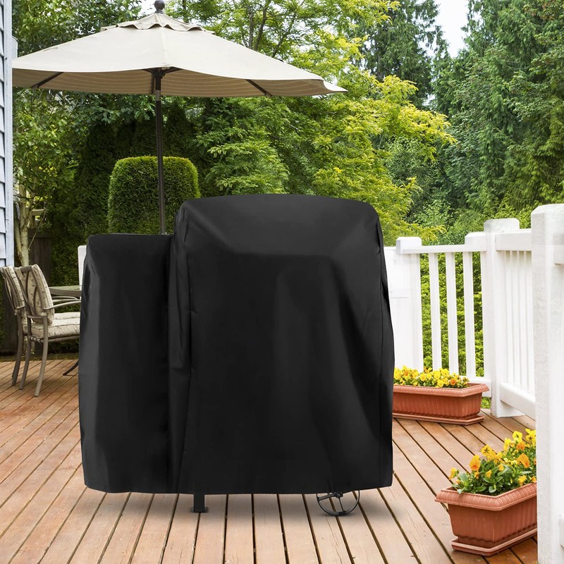 - HEAVY DUTY WATERPROOF GRILL COVER - Arcedo smoker grill cover for outdoor grill is made of high-quality polyester fabric with vinyl coating, provides a higher level protection to keep your pellet grill dry and clean all year round.
