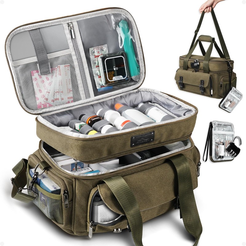 - SECURE & CHILDPROOF LOCK: The two-way lockable zippers and safe combination lock ensure the safety and security of this medication bag, while the water-resistant washed canvas material provides protection against spills and moisture