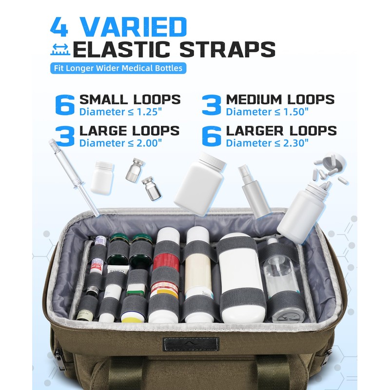 - CONVENIENT PORTABILITY: Whether it's for road trips or daily home use, this travel medicine bag is designed with top tote handles, an adjustable shoulder strap, and a back trolley sleeve for easy carrying on the go