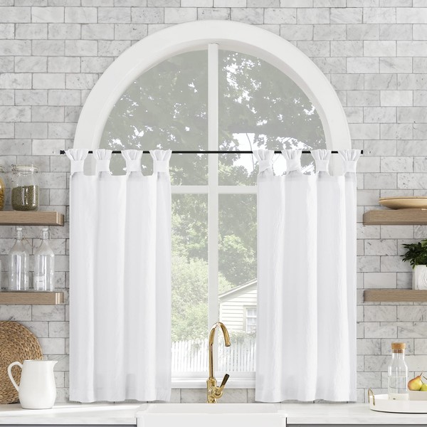 Archaeo Washed Cotton Small Window Twist Tab Cafe Curtains, 52" x 36", White