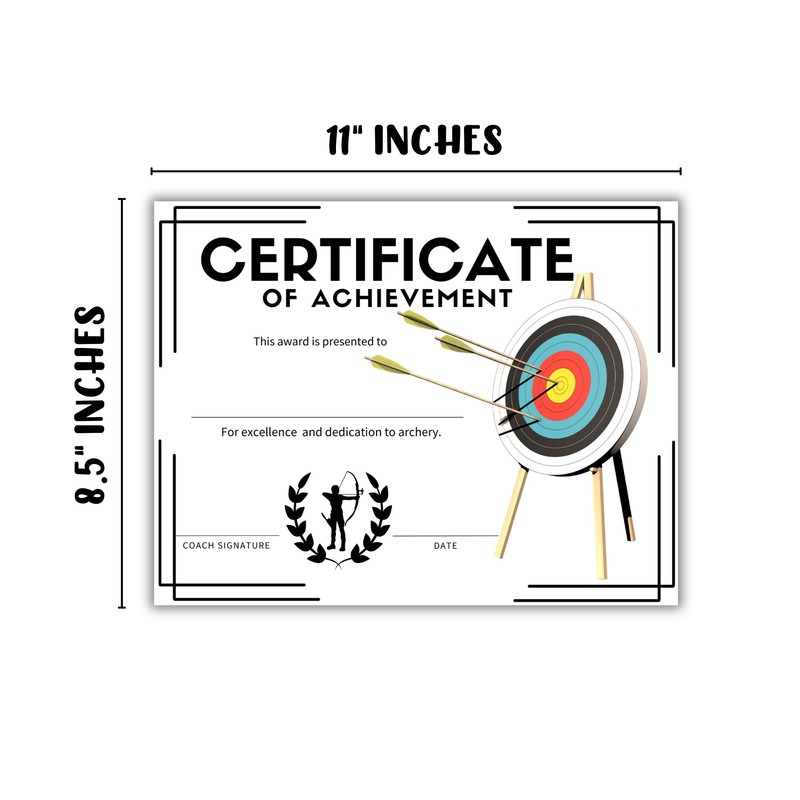 Printed on quality paper and sized to fit standard certificate holders or ready to frame, this 30-pack is a practical choice for schools, clubs, and organizations looking to recognize dedication and celebrate success in archery. Whether for individual accomplishments or team achievements, it provides a versatile and meaningful way to honor excellence in this exciting outdoor sport.