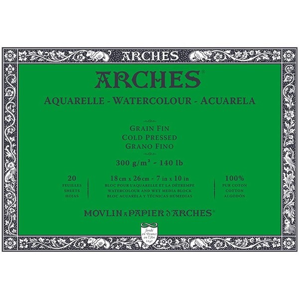 Arches 7" x 10" 20 Sheets 300gsm Cold Pressed Watercolour Paper Pad - White - A1795058