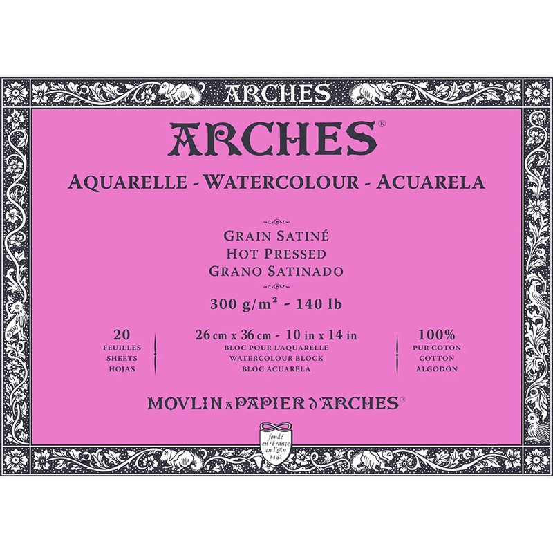ARCHES A1795073 Aquarelle 100% Satin 300 g Block Glued 4L 26 x 36 20 Sheets Natural White Paper