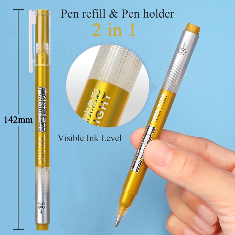 - Quick-Drying and Non Toxic: The gold highlighter pens are made of acid-free and non-toxic material. Pigment gel ink rollerball pen dries quickly and is waterproof and fade-proof, ensuring your drawings and doodles stay intact.