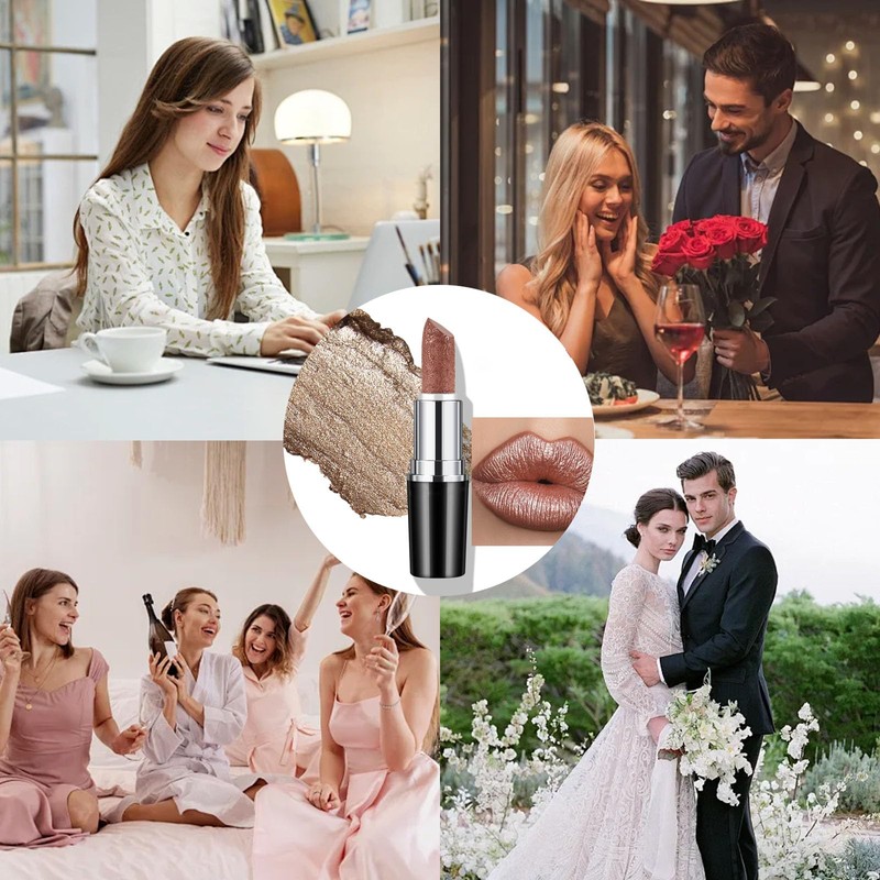 Shimmer lipstick can be waterproof, sweat-proof and non-stick throughout the day. Even after eating or drinking, your makeup remains intact, saying goodbye to the trouble of frequent reapplication