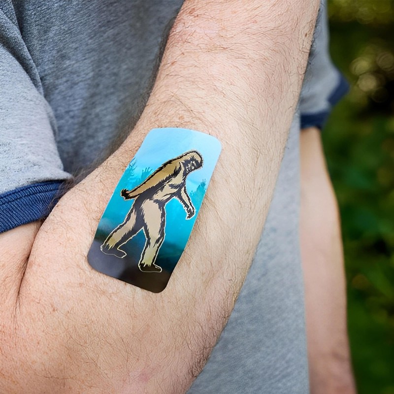 Anyone with feet the size of Bigfoot's must need bandages all the time. These extra large Bigfoot Bandages measure 3-inches long x 1 1/2-inches wide, so they'll cover even oversized blisters and boo-boos. The 10 bandages come in a lovely 3 3/4-inch tall metal tin. Latex free adhesive. Free prize in every tin! Ages 15 and up.