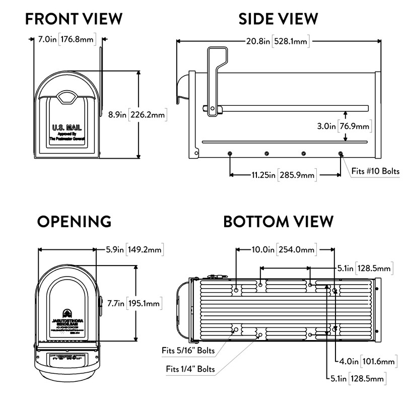 - Usps approved Winston mailbox is 6.8 in. W x 8.9 in. H x 20.8 in. D