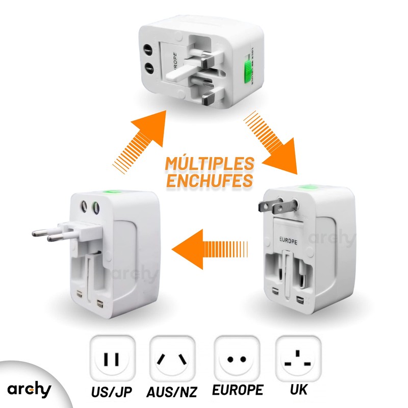 Archy Combo 2 Adaptadores de Enchufe Internacional Cargador para Viajes Adaptador Universal Todo en Uno Múltiples Conexiones Travel Europeo Americano Viaje Japon China Canadá USA EU UK AU (CXO8101X2)