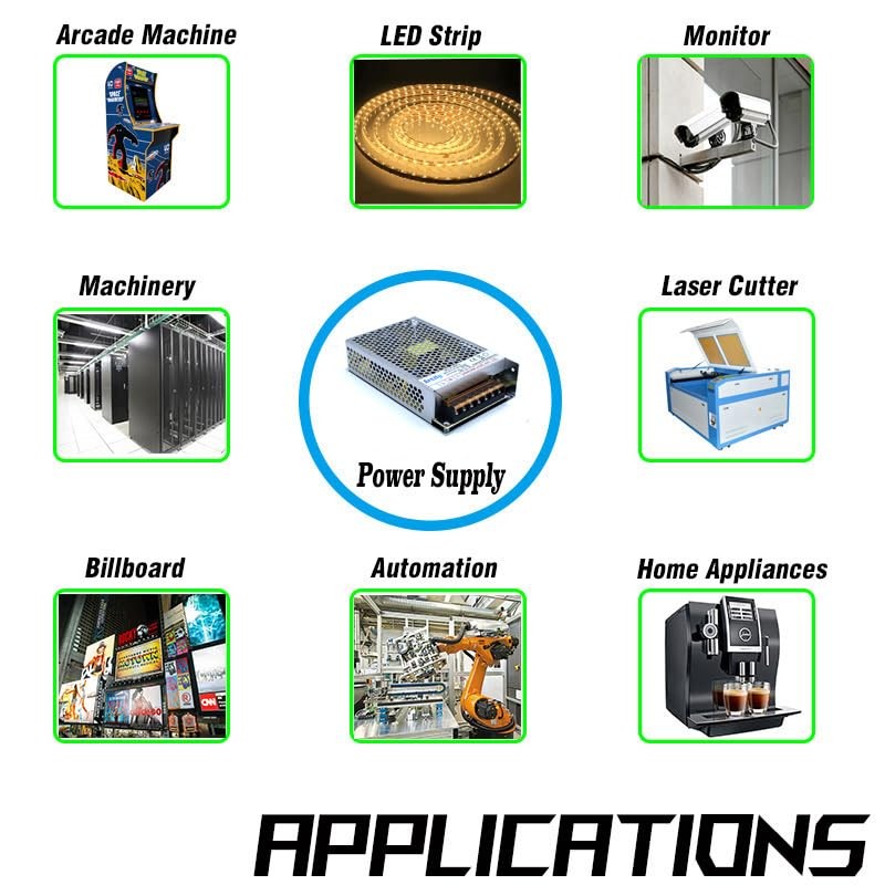 Arcity 5V 12V 24V Output Arcade Power Supply Switching Adjustable Video Multi Games Machine Console Cocktail CCTV LED Bar DIY Durable New(5V/10A 12V/12A 24V/4A)