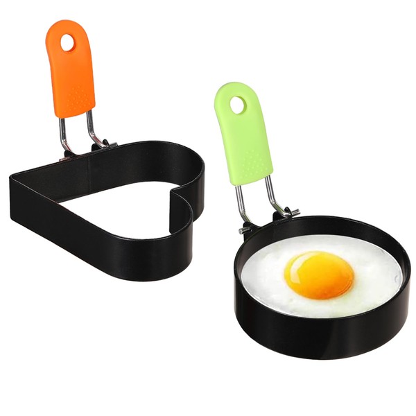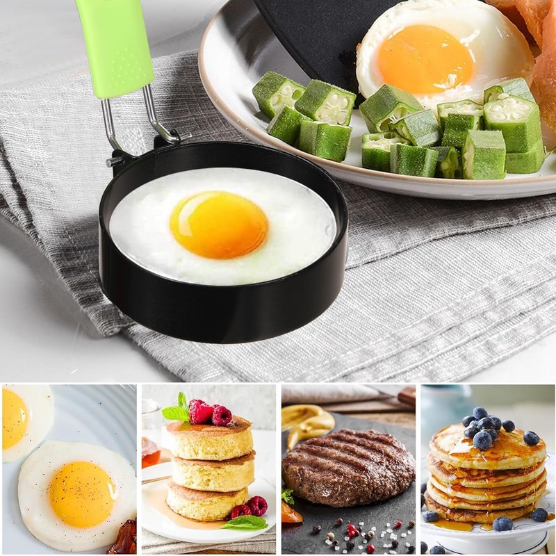 Arcjunys Egg Ring Stainless Steel Egg Rings for Frying Non Stick Fried Egg Mold Fried Egg Rings Egg Frying Rings with Anti Scald Folding Handle for Frying Eggs Omelet Muffins