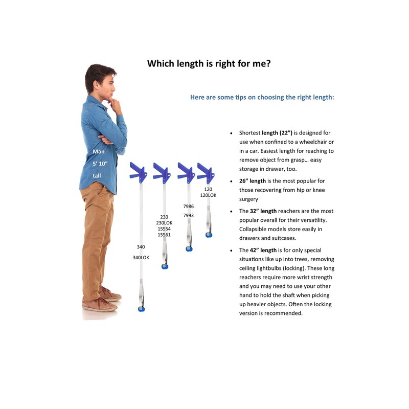 - INDOOR-FRIENDLY: The EZ Reacher Standard grabber tool will not scuff cabinets or floors, making it an ideal garbage or laundry grabber. 32" Deluxe Locking Handle Reacher, 1-pack.