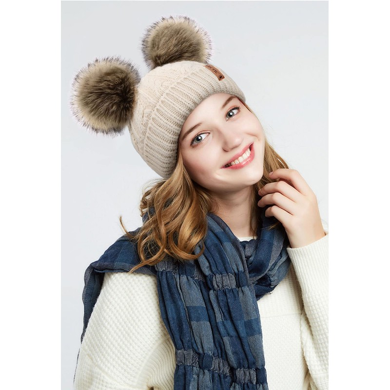 - Double Pompom Beanie: This fleece lined cozy knit beanie features double adorable faux fur pompom "ears" for a look that's both irresistibly sweet and super stylish,and also makes you full of youthful and vitality