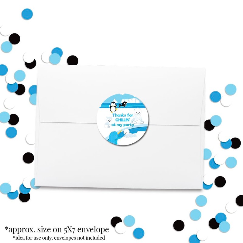 Arctic Polar Animal Friends Birthday Party Thank You Sticker Labels for Boys, 40 2" Party Circle Stickers by Amanda Creation, Great for Party Favors, Envelope Seals & Goodie Bags