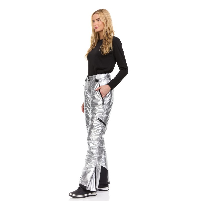Arctic Quest Women's Snow Ski Pants Water Resistant Softshell Insulated Flare for Snowboarding Hiking Winter Outdoor Pants, Metallic Silver, X-Large