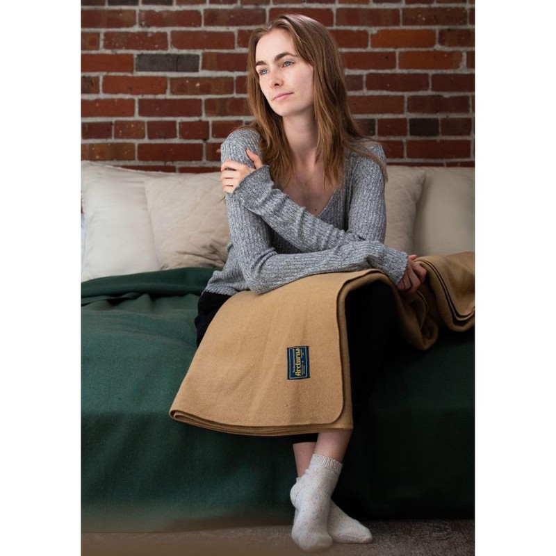 Arcturus Bighorn 100% Virgin Wool Blanket | Heirloom-Quality Wool Bedding for Home & Cabin | Warm, Thick & Durable (Queen Size, Flax)