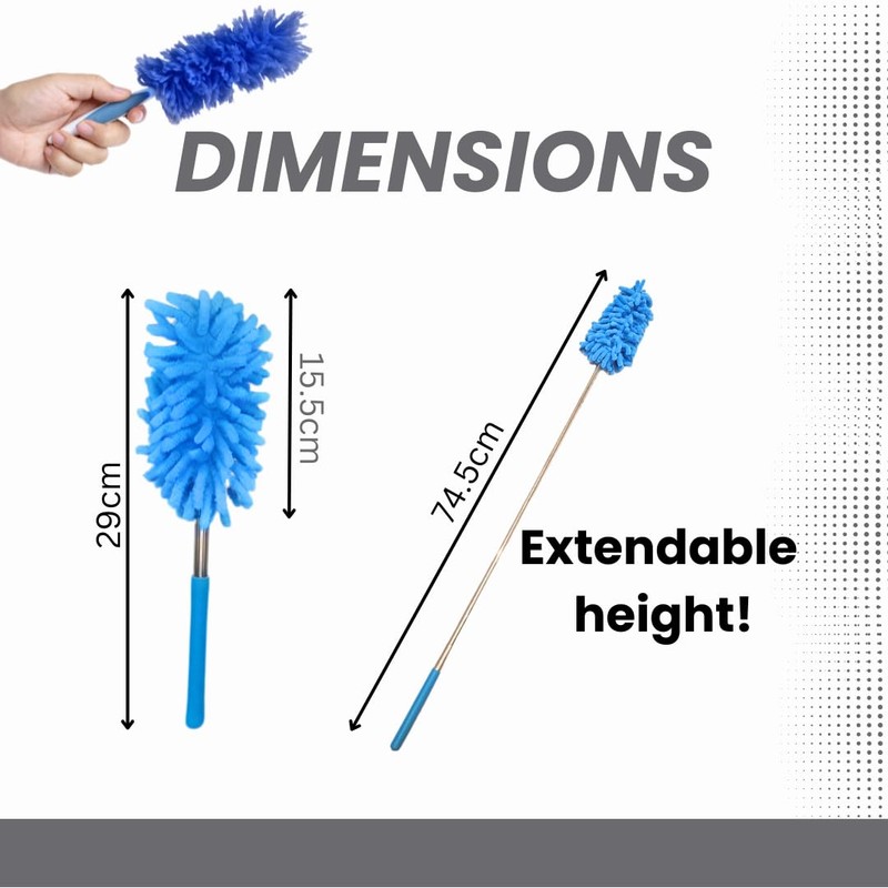 • EXTENDABLE: The extendable feature allows you to clean high or hard-to-reach areas, such as ceiling fans, light fixtures, and corners, without needing a ladder.