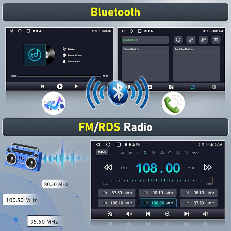 ●FM Radio: Online music you can transfer the music to the car stereo by FM to enjoy the original car stereo sound,with 18 preset stations
