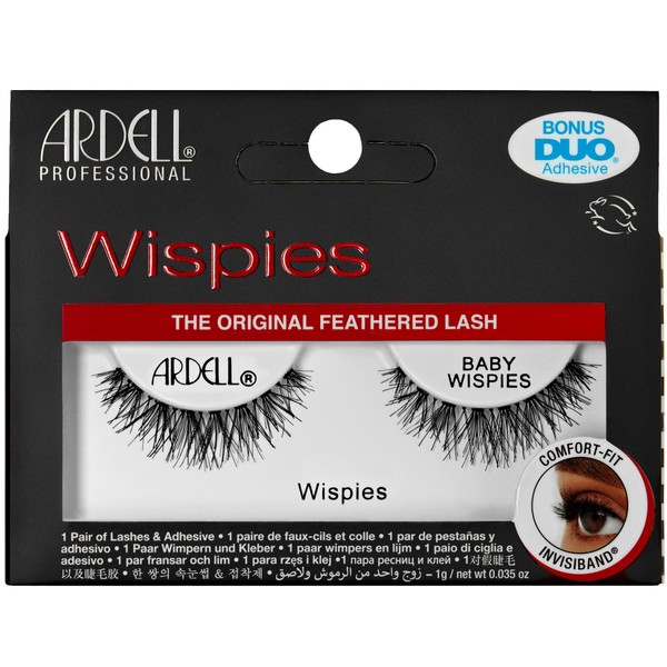 Ardell Baby Wispies False Eyelashes with Adhesive – Feathered Natural Lashes Wispy Lashes Strips with Invisiband, Natural Look Fake Eyelashes, 1 Pair