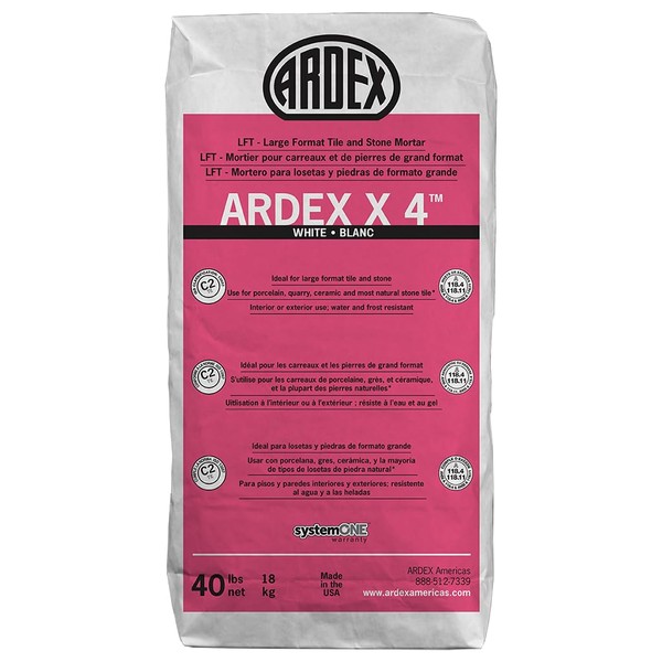 Ardex X 4 Thinset Mortar - 40 Lbs Bag, White, for Indoor and Outdoor Installation of Large-Format Tile and Heavy Stone on Walls and Floors, Easy Application