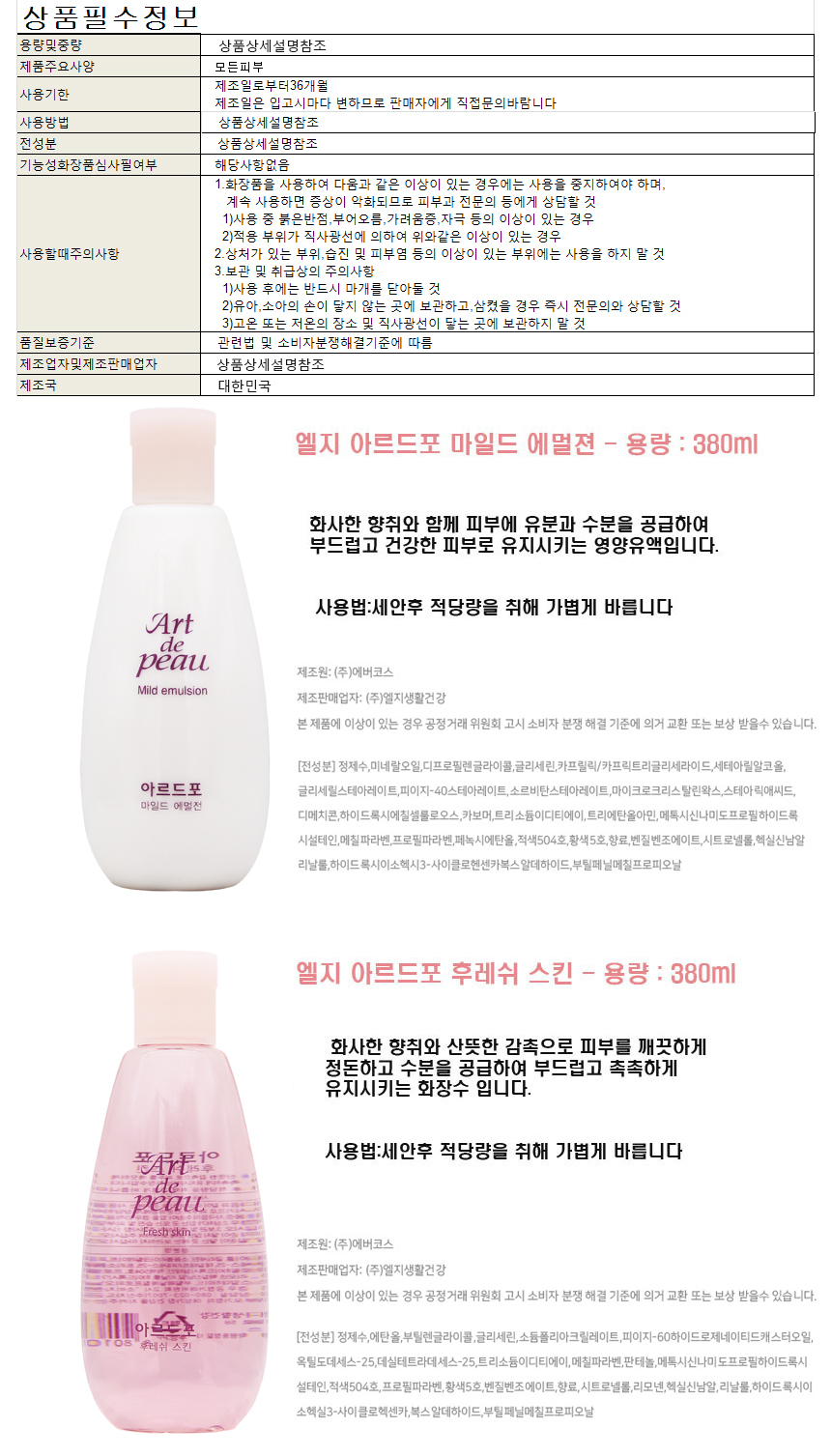 Ardfor Fresh Skin 380ml + Mild Lotion 380ml 6ea