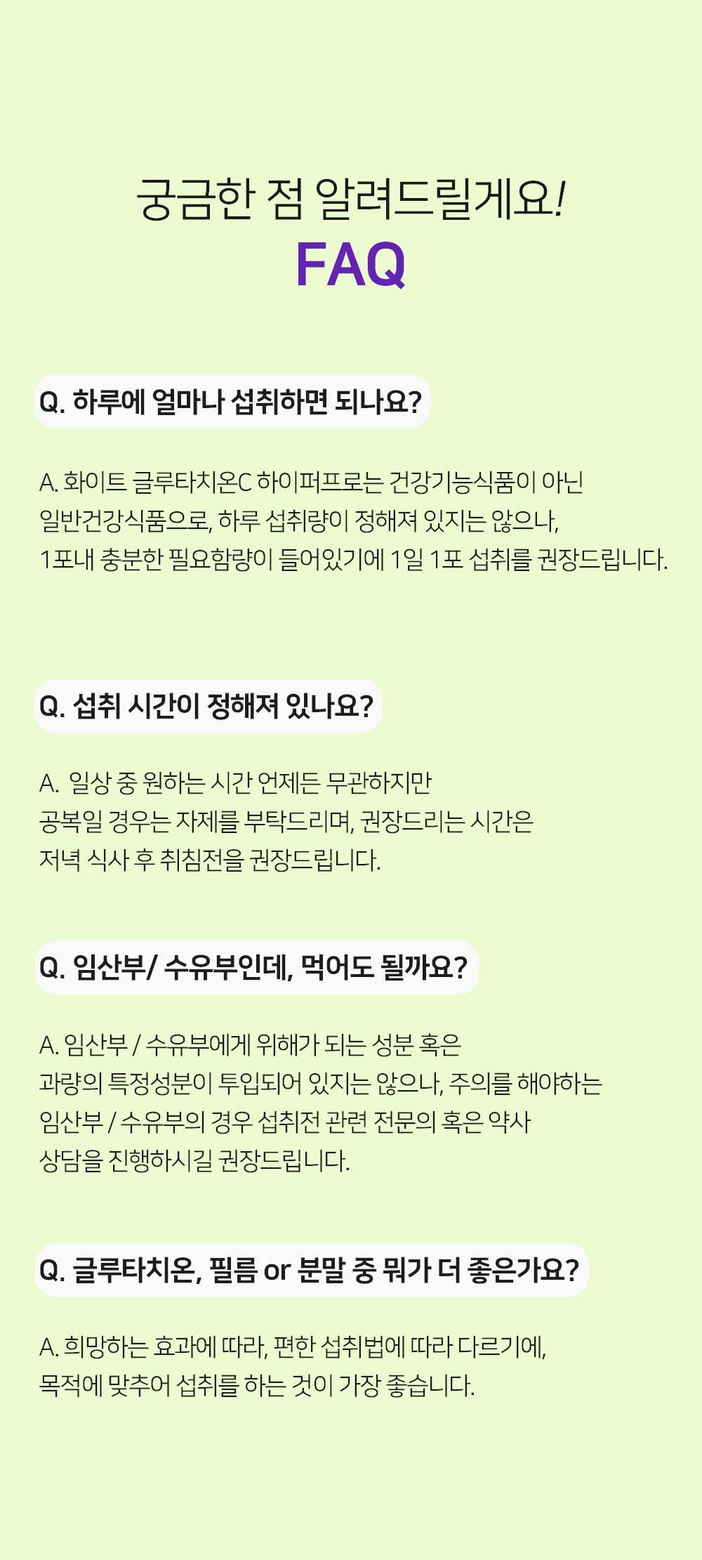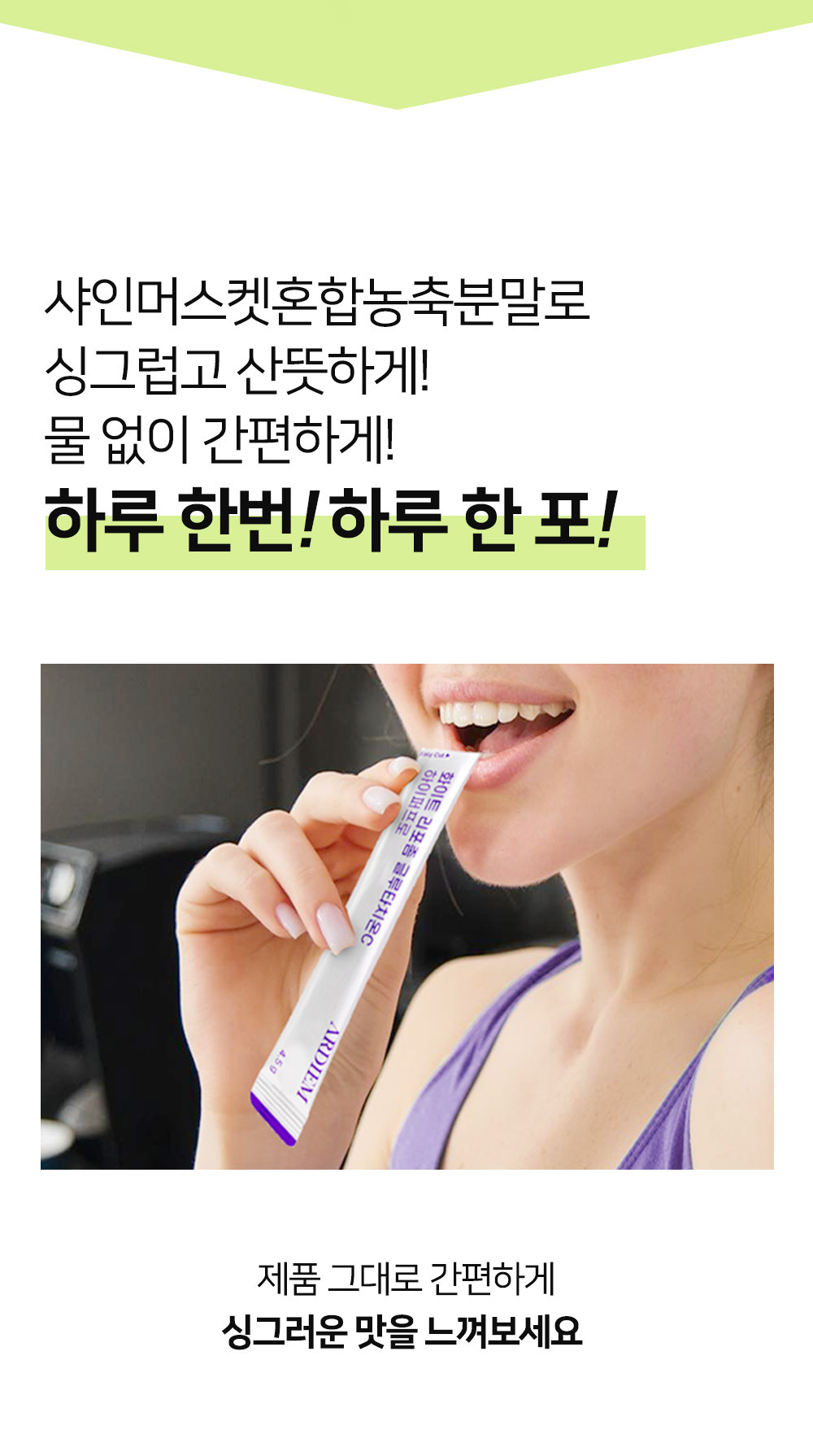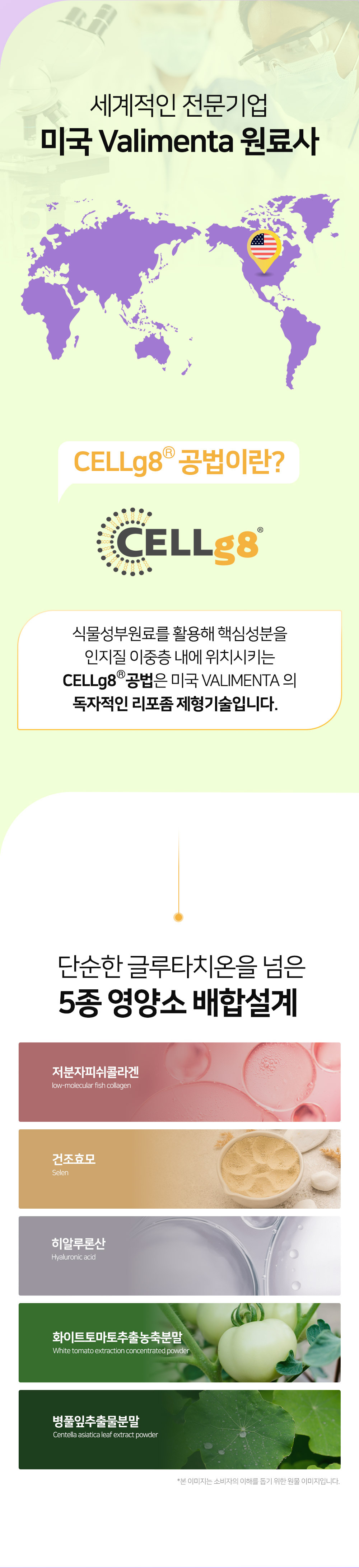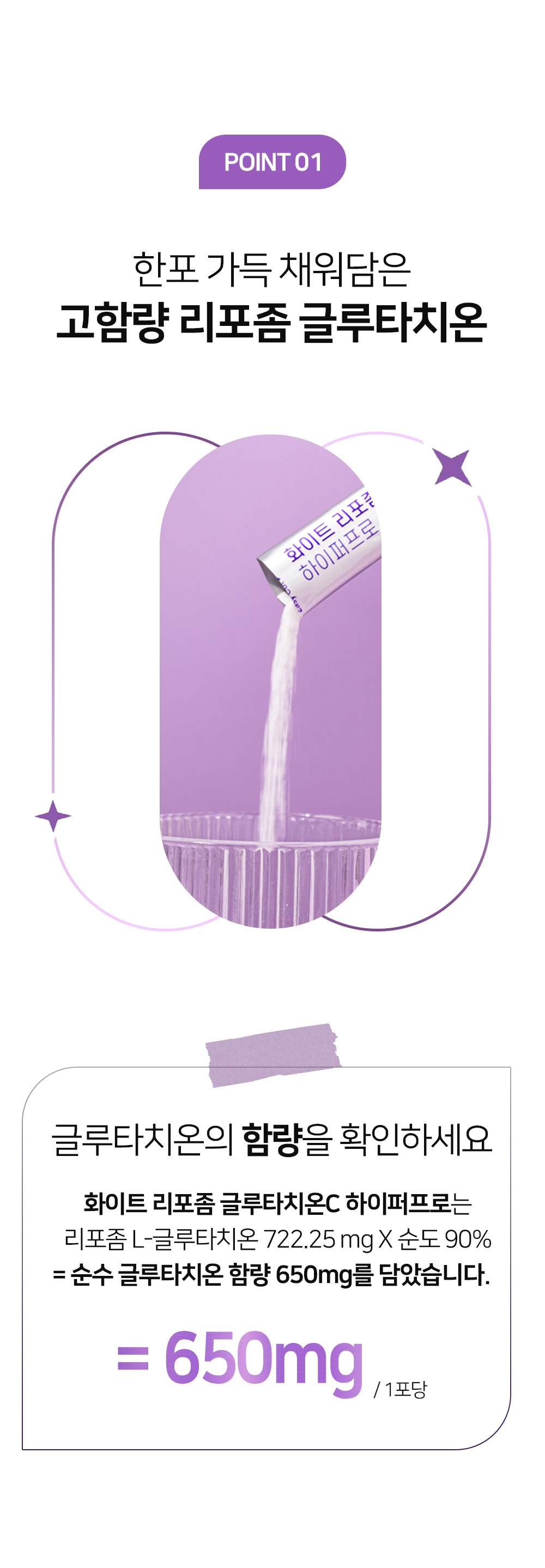 | Ingredients | Glucose, Liposome L-Glutathione, Lecithin, Citric acid, Fructooligosaccharide, Chicory extract, Vitamins, Fish collagen, Aloe vera, etc. |