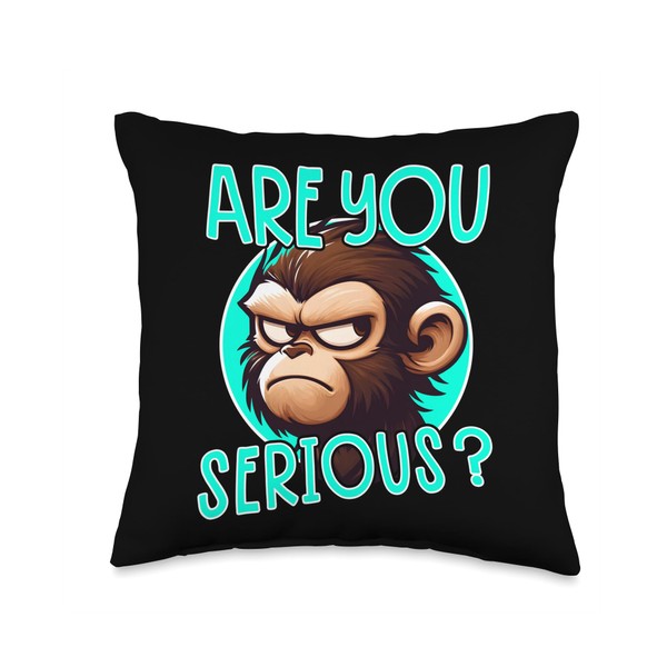 Are You Serious Grumpy Funny Monkey Meme Humor Throw Pillow