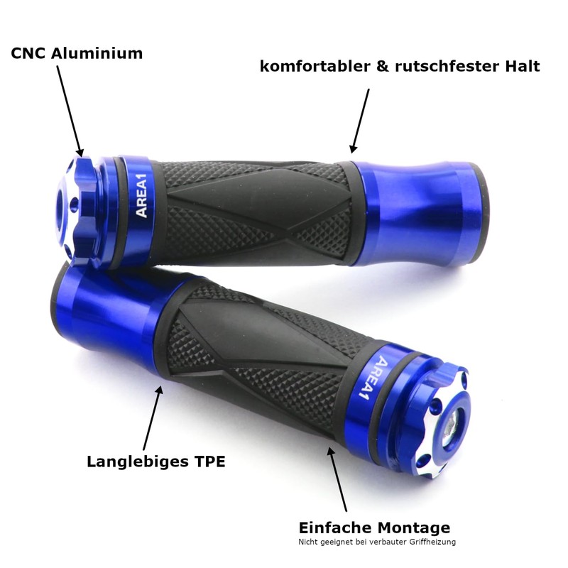 - Universelle Motorrad und Motorroller Lenkergriffe von der deutschen Marke Area1 stehen für höchstmögliche Qualität in Verbindung mit modernen Designs. Diese Lenkergriff-Serie bietet zahlreiche Highlights und garantiert einen ultimativen Blickfang an Ihrem Fahrzeug: