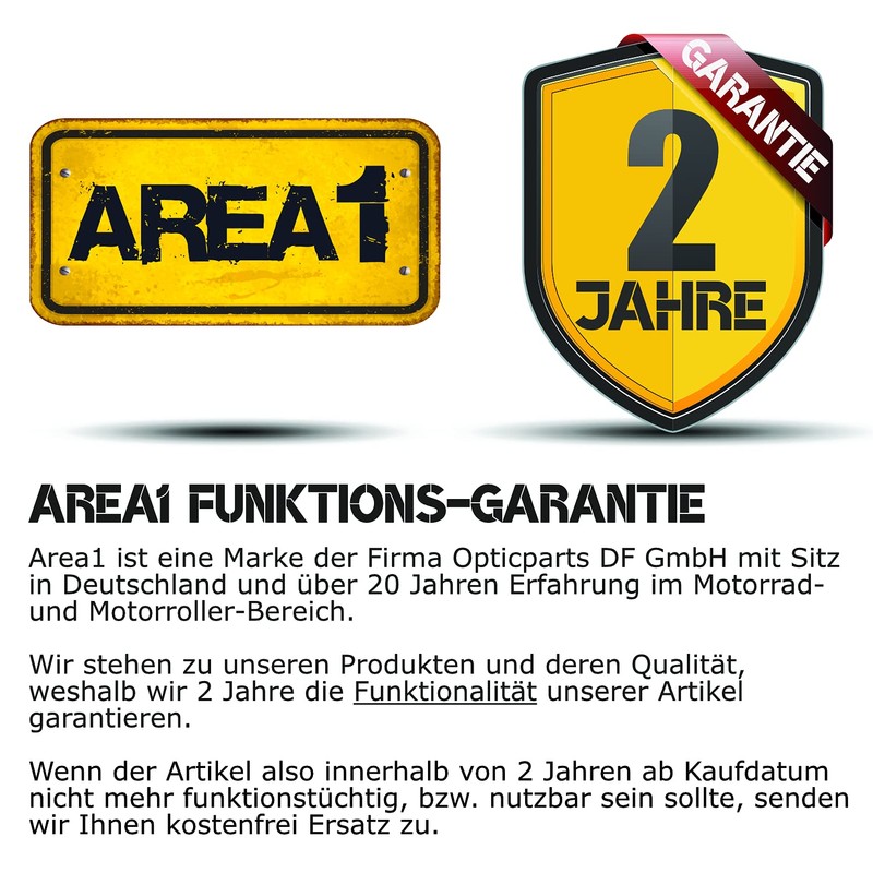 The indicators offered are E-tested and can be used legally, without TÜV registration, in road traffic. The indicators were tested according to ECE 50R 11+12. This ensures that the indicator can be mounted at the front and back.