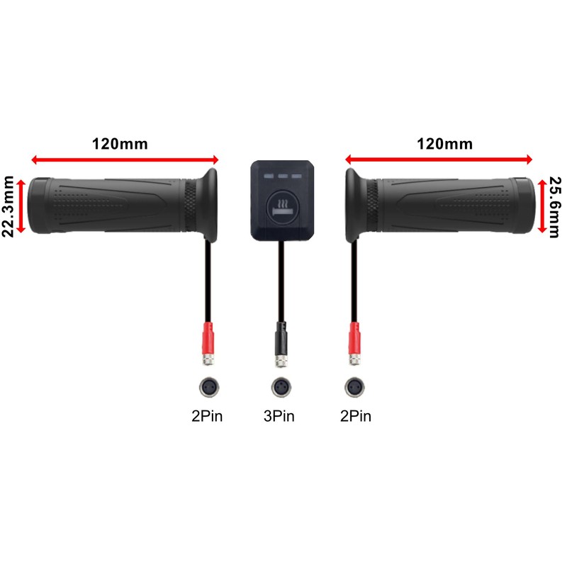 - Lieferumfang: 2 Heizgriffe, Steuereinheit für die Temperaturregelung, 3 verschiedene Halterungen für den wasserfesten Wärmestufenschalter, alle notwendigen Kabel und Montagematerialien