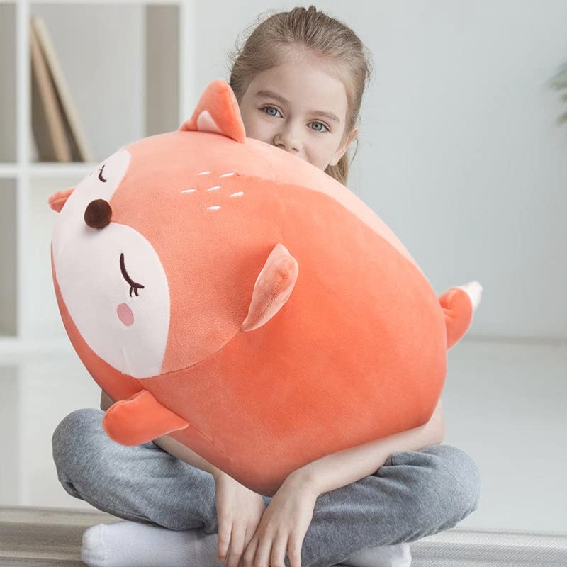 ARELUX Fox Plush Pillow Stuffed Animal Snuggly Pillow Cute Plush Toy Snuggle Buddy Fox Plushie Kawaii Soft Hugging Pillow for Kids Boys Girls 17.7in