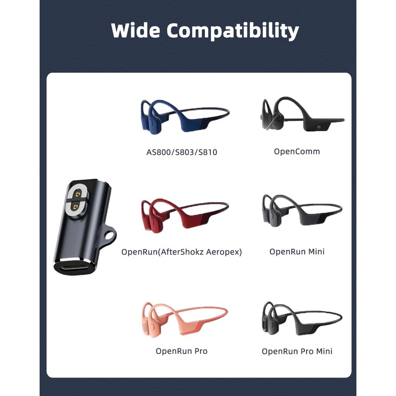 - 【Type-C Charging Adapter】With this adapter, you can use a charger, power bank, or car charger to connect a USB to USB C cable or USB C to USB C cable to charge your shokz headphone anytime, anywhere. Note: Cable is not included.