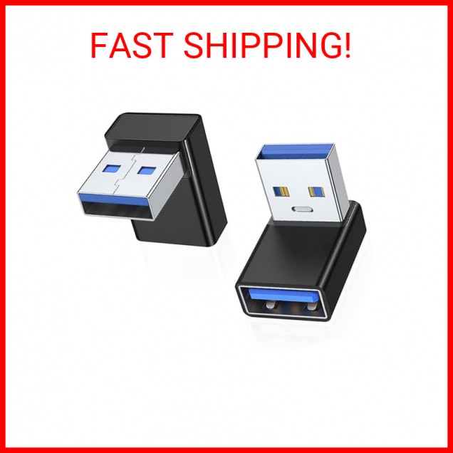 AreMe 90 Degree USB 3.0 Adapter 2 Pack, Upward Angle USB A Male to Female Conver