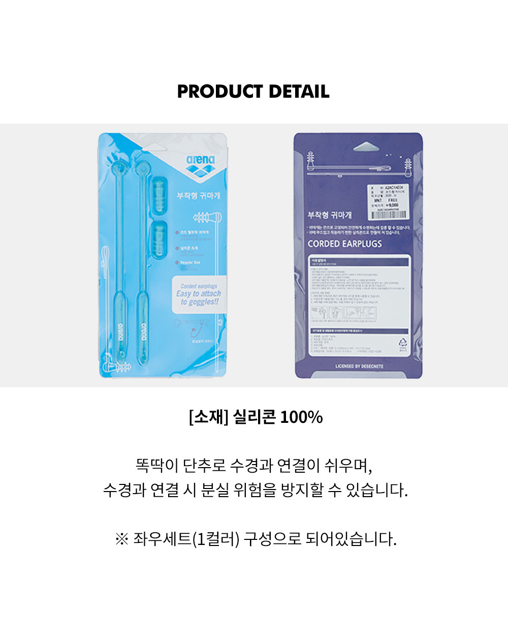 Arena corded earplugs silicone swimming practice / 아레나 코드형 귀마개 이어플러그 실리콘 수영연습