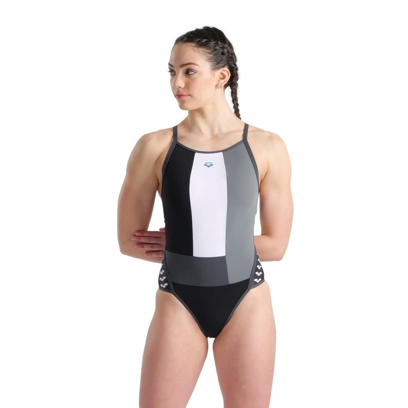 Arena Performance Icons Panel Women's Swimsuit Super Fly Back One Piece MaxLife Training Suit, Black/Asphalt/Ardesia, US Size 34