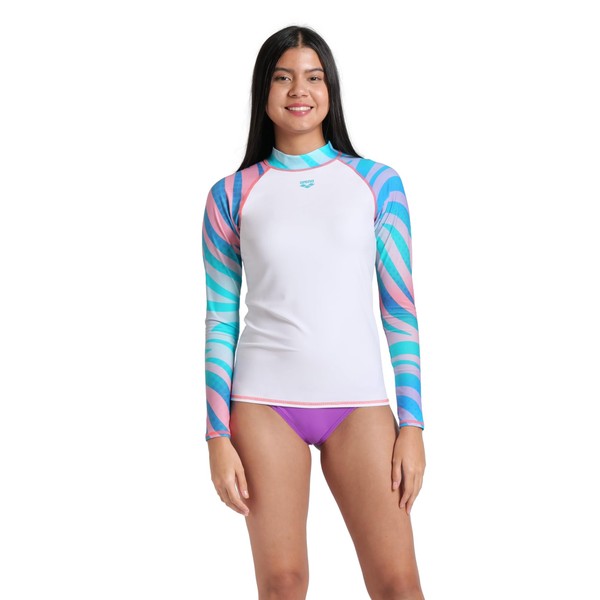 ARENA Women's Vest L/S Allover Rash Guard Shirt, White-flow, M
