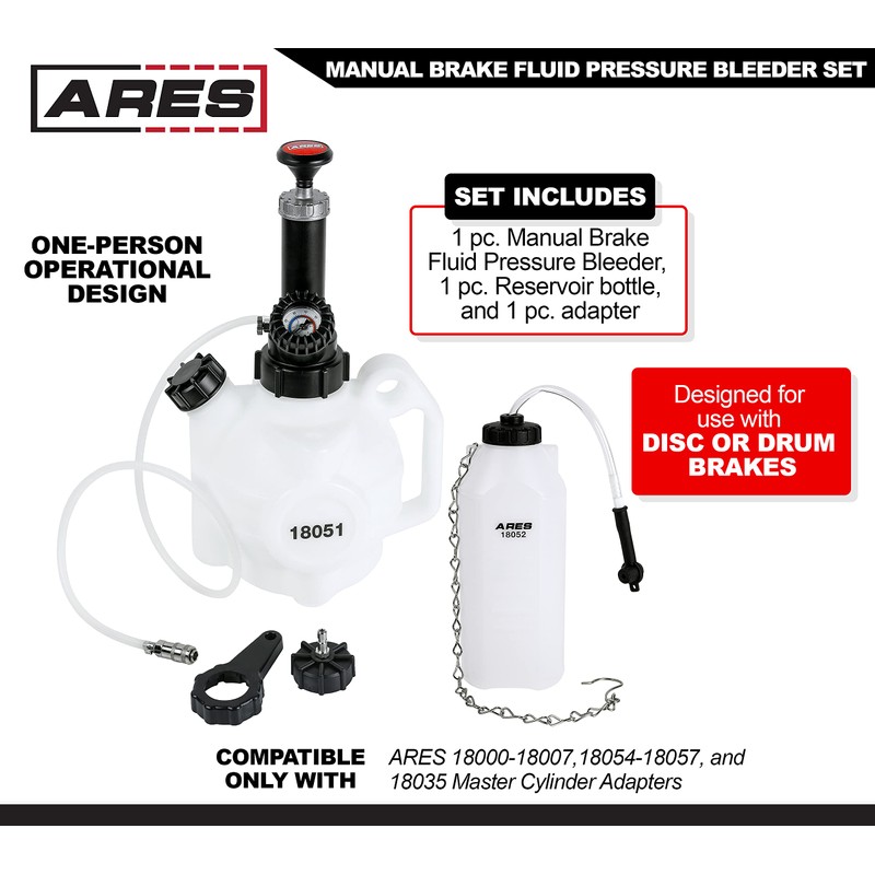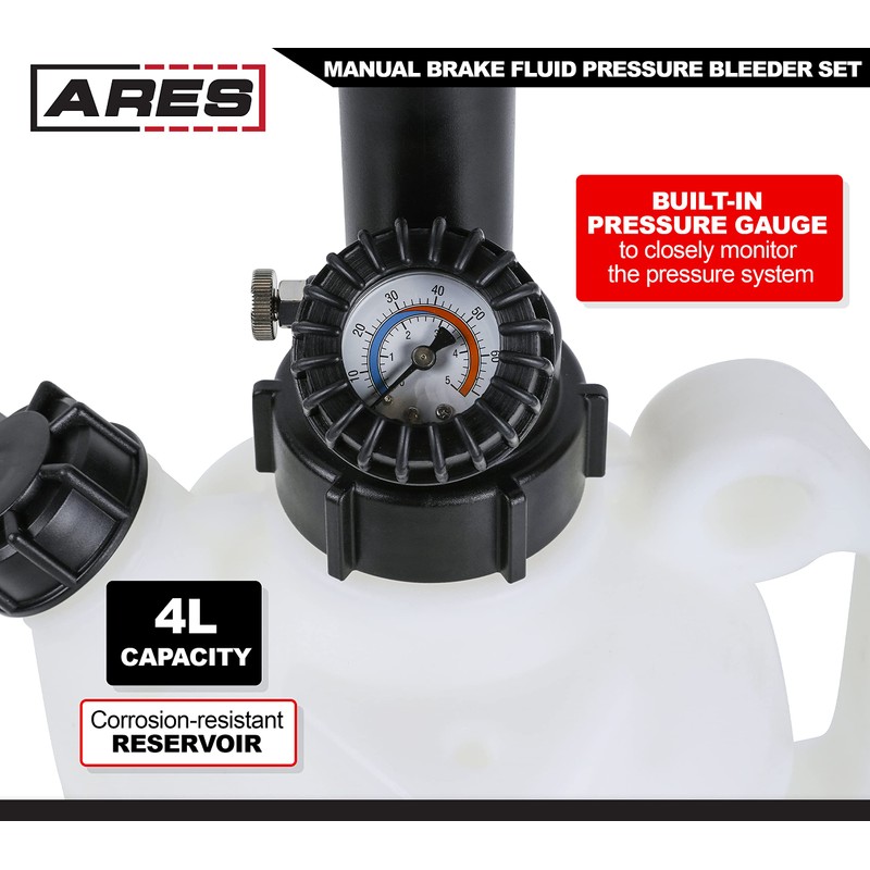 - RELIABLE | EFFECTIVE | EFFICIENT: Users trust ARES to be quality tools. You are backed by our Performance Assurance. If you have any issues with your ARES 4L Manual Brake Fluid Pressure Bleeder, simply contact customer service for troubleshooting help, parts, replacement, or refund.