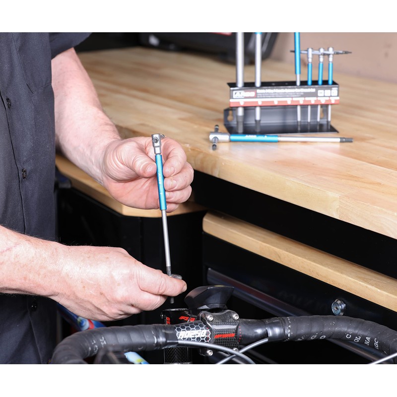- DESIGN: Our hex wrenches are constructed of premium Chrome Vanadium Steel, each with a satin chrome plated finish for increased durability and corrosion resistance. The sliding 3-way design allows you to adjust each wrench in multiple configurations, from L-shaped to T-shaped, for added leverage and easier center positioning. With their extra long reach, these wrenches are perfect for easy access in jobs that require deeper clearance, like removing fuel rails or recessed fasteners.