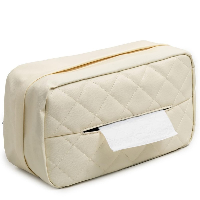 ARESACHI 車 ティッシュケース 車用ティッシュケース ティッシュホルダー 後部座席 (アイボリーホワイト)