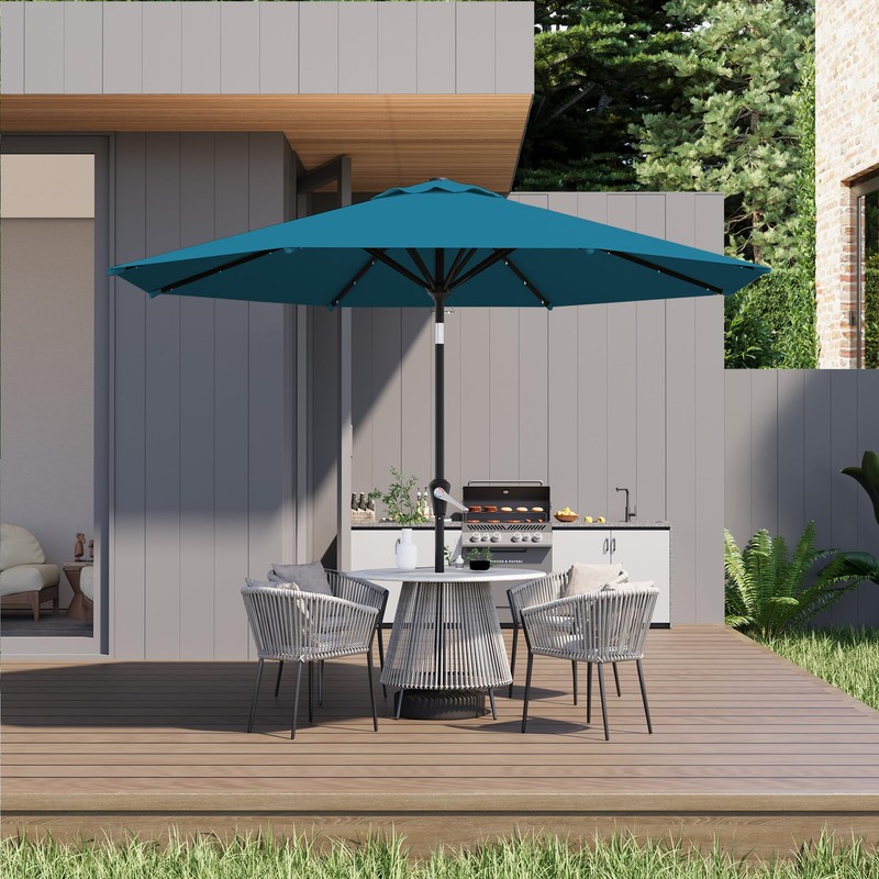 - VERSATILE CHARM - Solar powered LED lights brighten up an evening gathering, while the outdoor umbrella designed to complement any setting, our umbrella provides ample shade for markets, gardens, or poolside relaxation, keeping you cool and comfortable all day